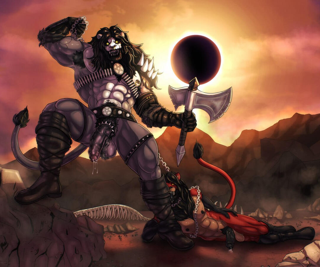Gaknuz is a Barbarian and Viking lion and a Grungoth clan member in which he has some rivalry with the gray lion, both have duel often, but in addition to testing their strength, they tested who is more dominant, have already won several duels, loves to drink a good hydrobim and fuck with other warriors, whether man or women.Its relentless force and struggle thirst makes it a formidable opponent, but also a loving and Stud Lion