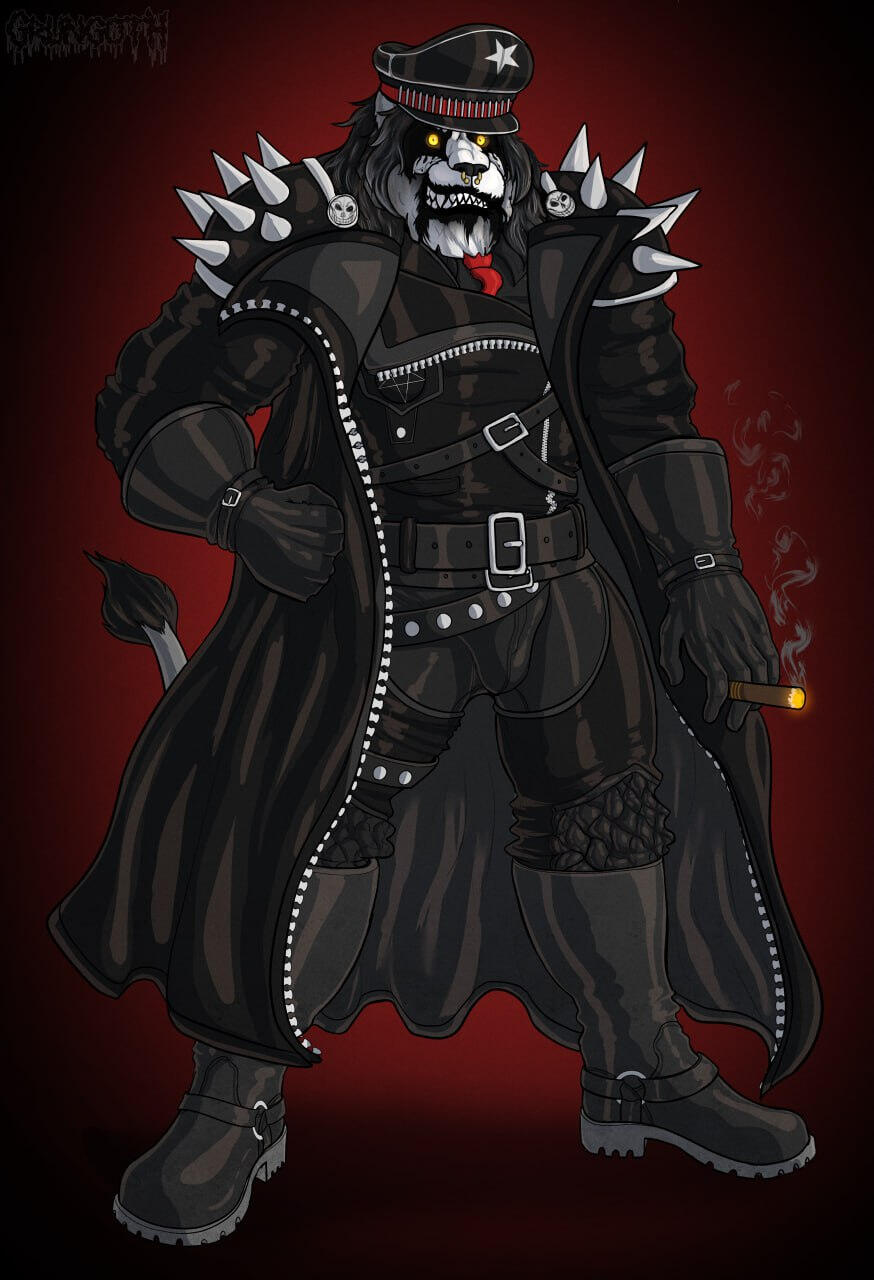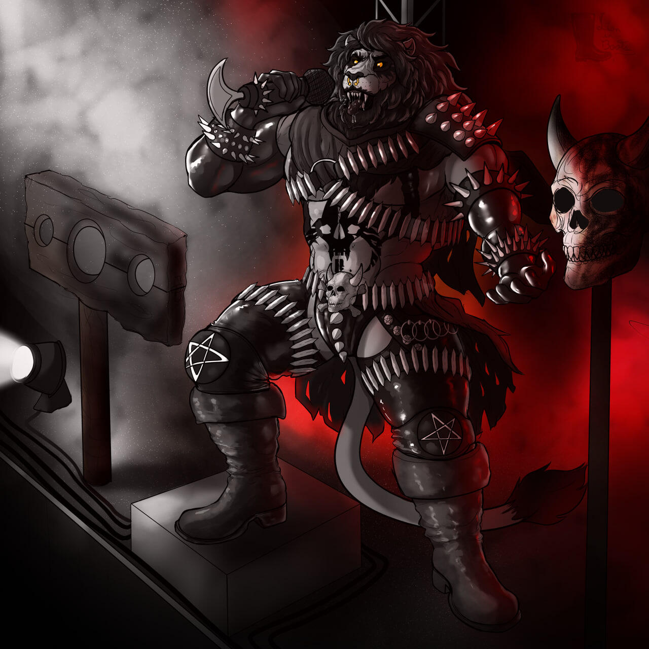 Grungoth (Grune) Borgzan is a Gray Lion with Yellow eyes and a Dark Mane.His appearance is in the Black Metal style, with corpse paint, barbaric accessories and lots of leather and latex.-With an aura of evil and chaos, Grune is a brute Atlas Lion and King of Unholy Metal.